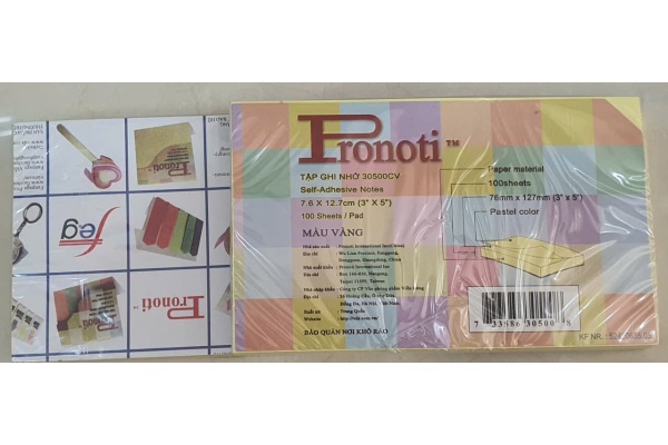 Giấy note vàng 3x5 Pronoti (kích thước khoảng 7,6cm x 12,7cm) là loại giấy ghi chú phổ biến, được bán rộng rãi tại các cửa hàng văn phòng phẩm và các trang thương mại điện tử ở Việt Nam