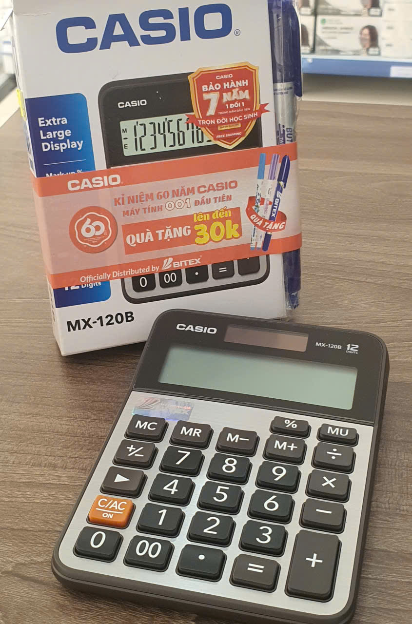 Máy tính CASIO MX-120B là một máy tính để bàn mini cơ bản, 12 chữ số, nổi tiếng về độ bền và độ tin cậy, rất phù hợp cho công việc văn phòng, kế toán và sử dụng hàng ngày.