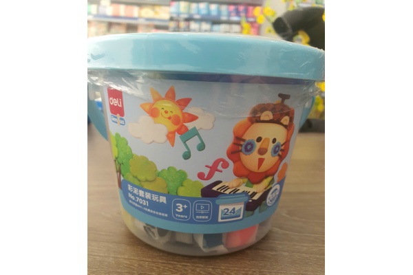 • Phụ kiện đi kèm: Mỗi hộp đất nặn Deli 24 màu No.7031 thường đi kèm với 7 khuôn ngẫu nhiên (hoặc các phụ kiện nặn khác tùy nhà bán hàng) để bé tạo hình dễ dàng hơn.