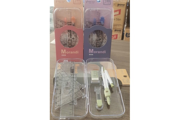 bao gồm đầy đủ các dụng cụ cần thiết cho môn toán học và hình học.