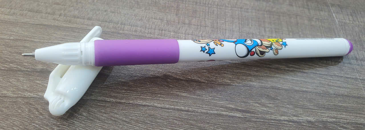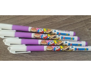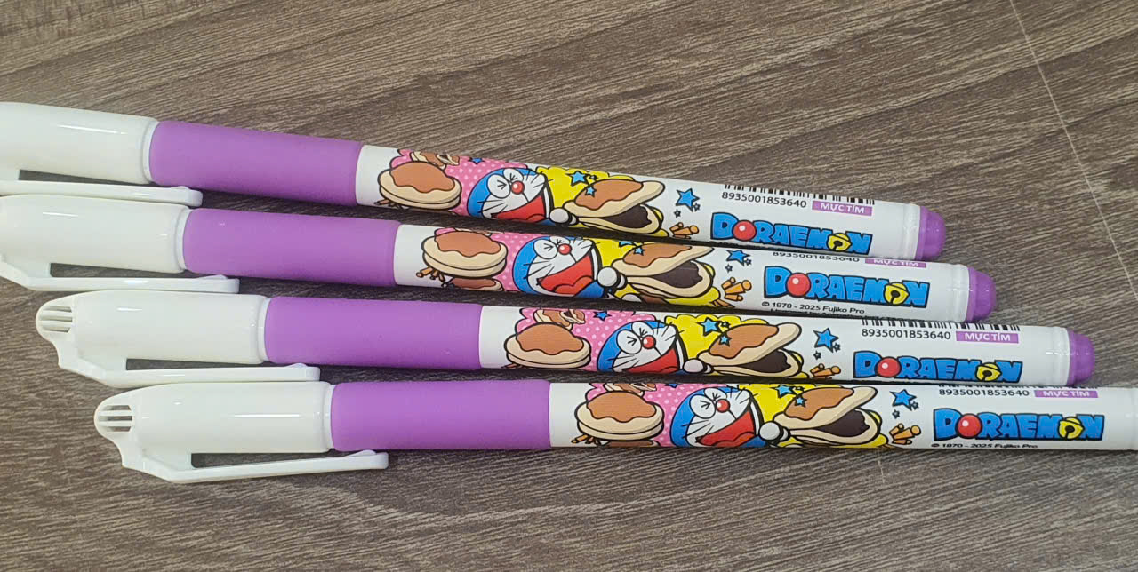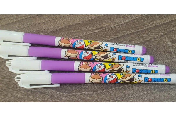• Thiết kế thân bút: Thân bút bằng nhựa trắng đục, hình tròn, nhỏ gọn, in hình nhân vật Doraemon thu hút, phù hợp với tay cầm của học sinh tiểu học.
