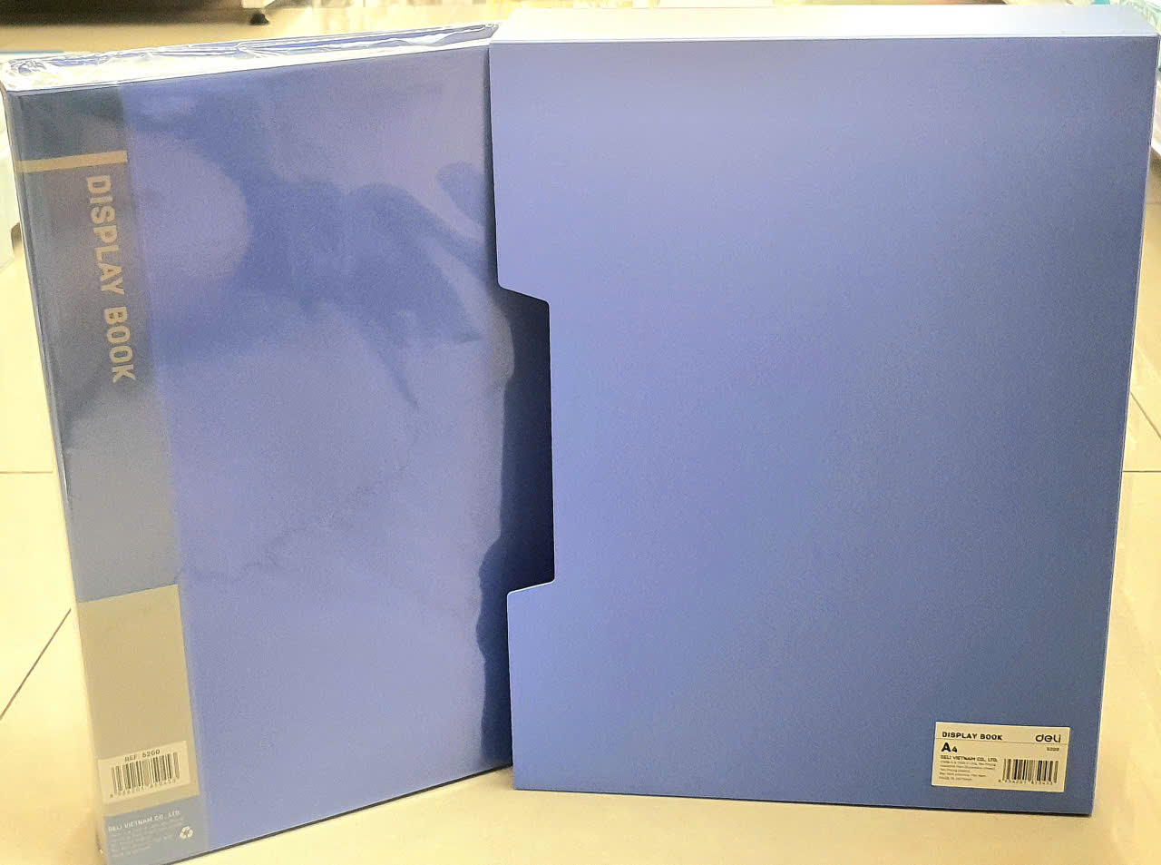 Cặp 100 lá Deli 5200 là loại bìa hồ sơ nhựa với 100 lá trong suốt khổ A4, được thiết kế để lưu trữ và bảo quản tài liệu một cách gọn gàng, có kèm theo hộp bảo vệ tiện lợi.