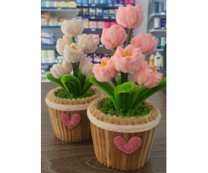Hoa kẽm nhung linh lan là sản phẩm thủ công (handmade) mô phỏng loài hoa linh lan (lan chuông) bằng dây kẽm nhung mềm mại, thường được dùng để trang trí bàn học, làm quà tặng hoặc đèn ngủ decor