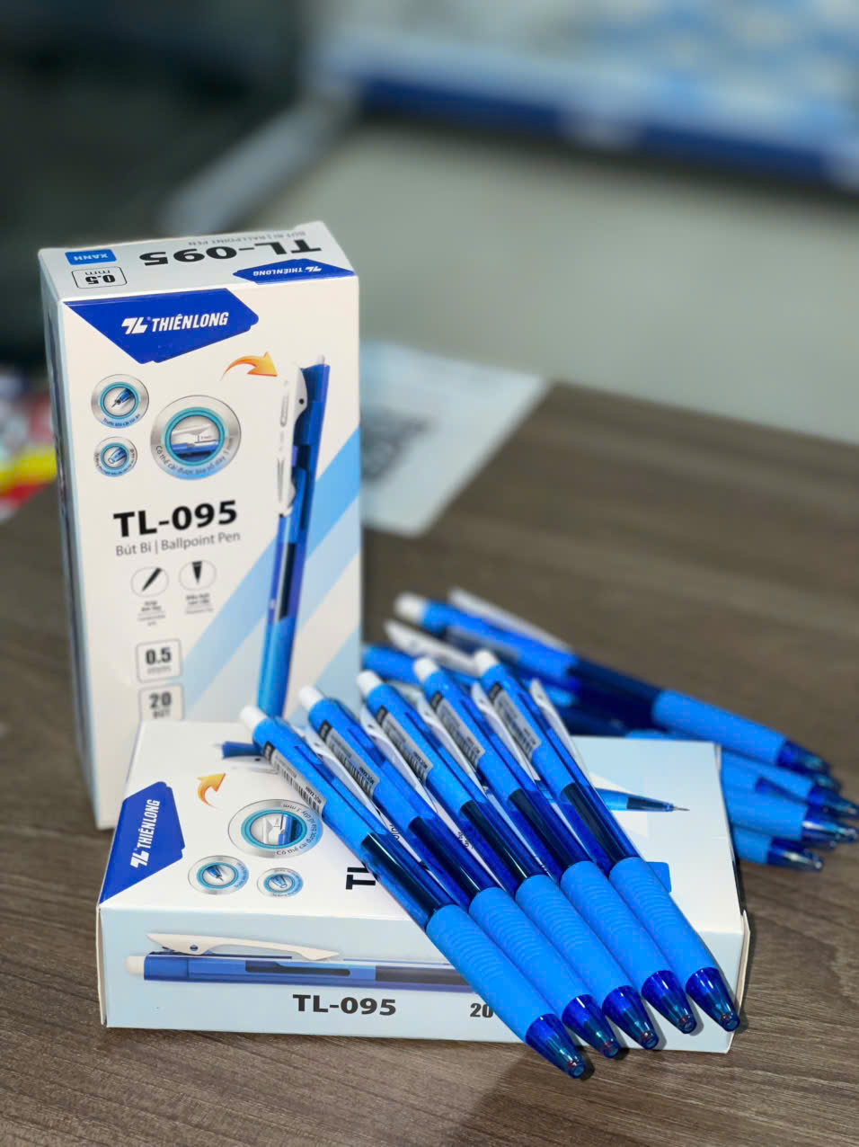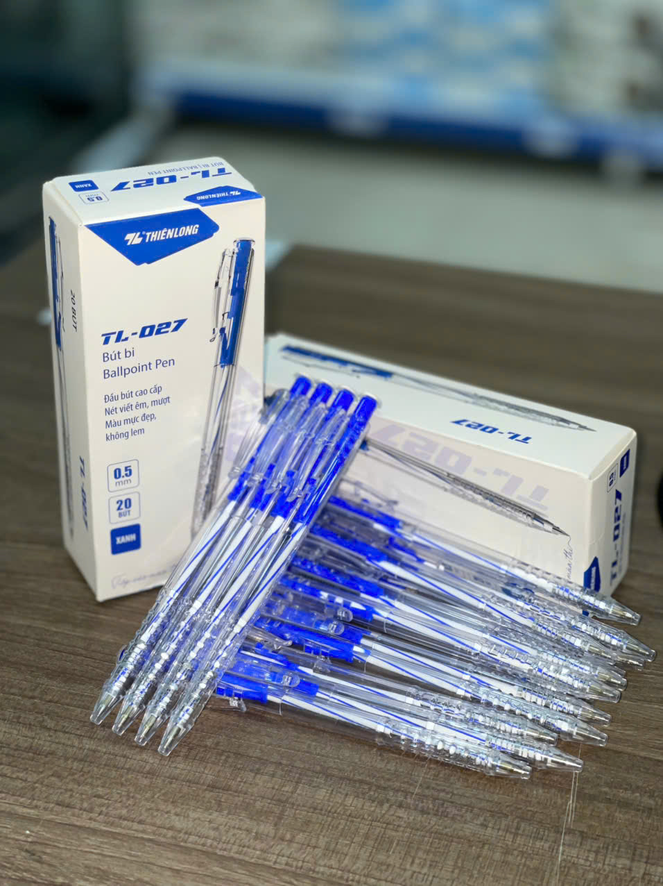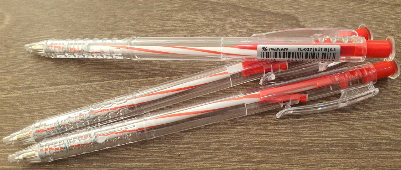 • Chất liệu: Thân bút làm bằng nhựa cứng, đầu bi làm bằng hợp kim, có độ bền cao.