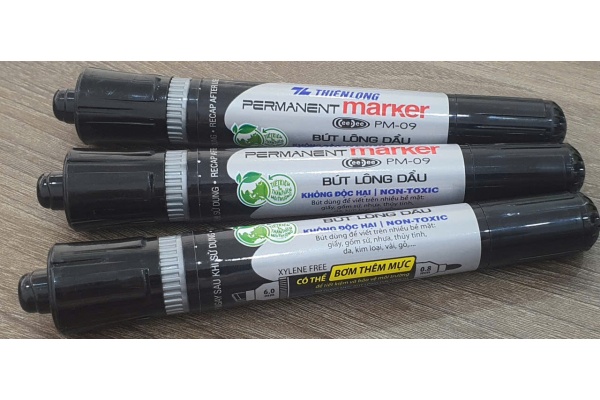 Bút lông dầu Thiên Long PM-09 là một sản phẩm phổ biến với hai đầu bút có kích thước khác nhau (0.8mm và 6mm), cho phép sử dụng đa năng trên nhiều loại bề mặt. Mực bút có độ bám dính tốt và không phai, phù hợp cho nhiều mục đích đánh dấu khác nhau.