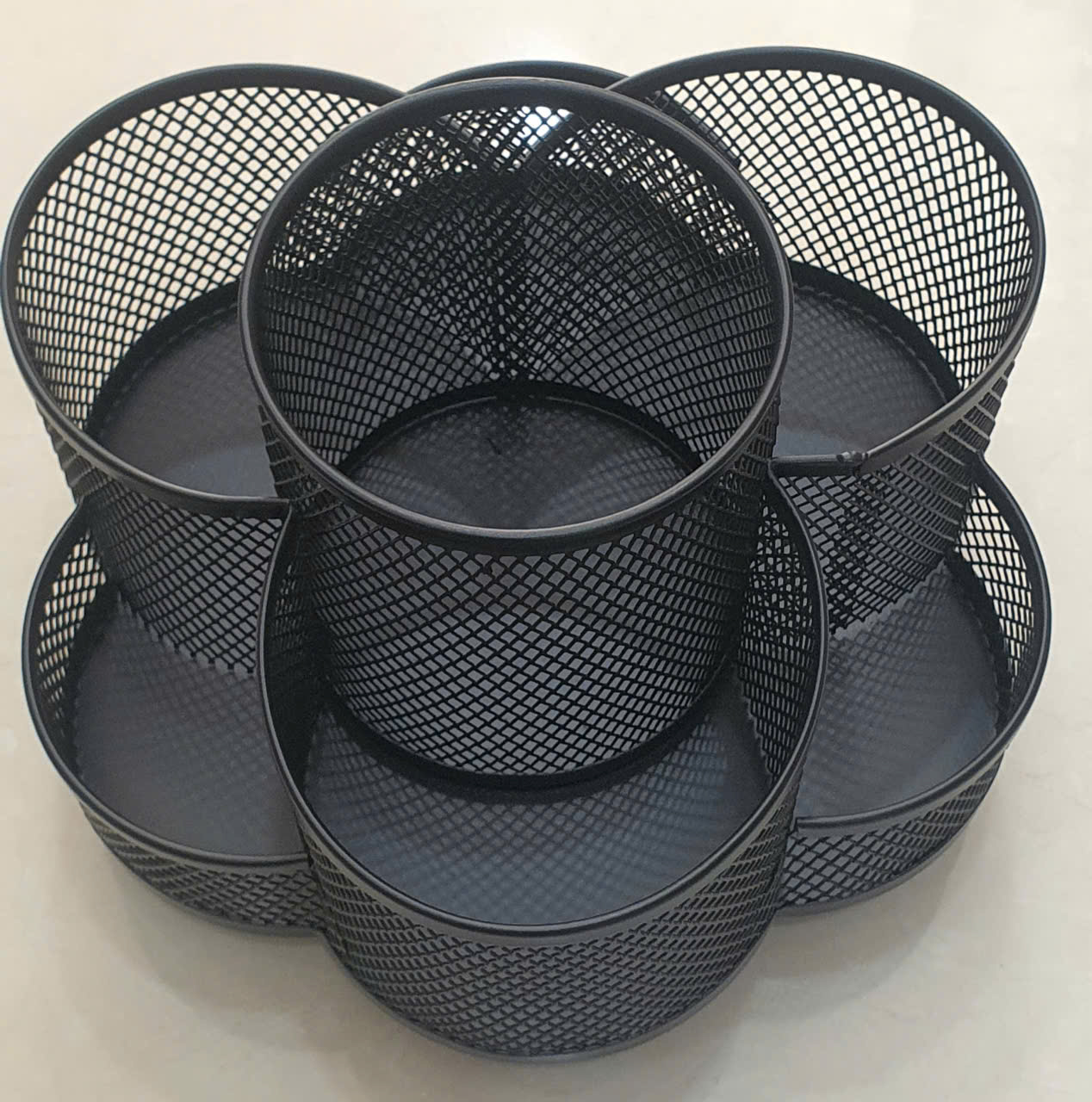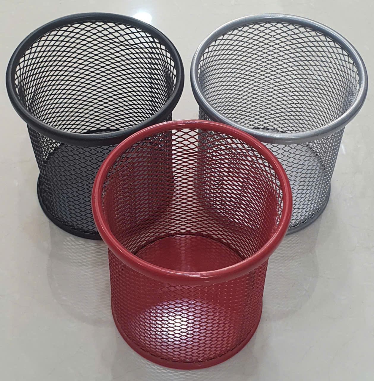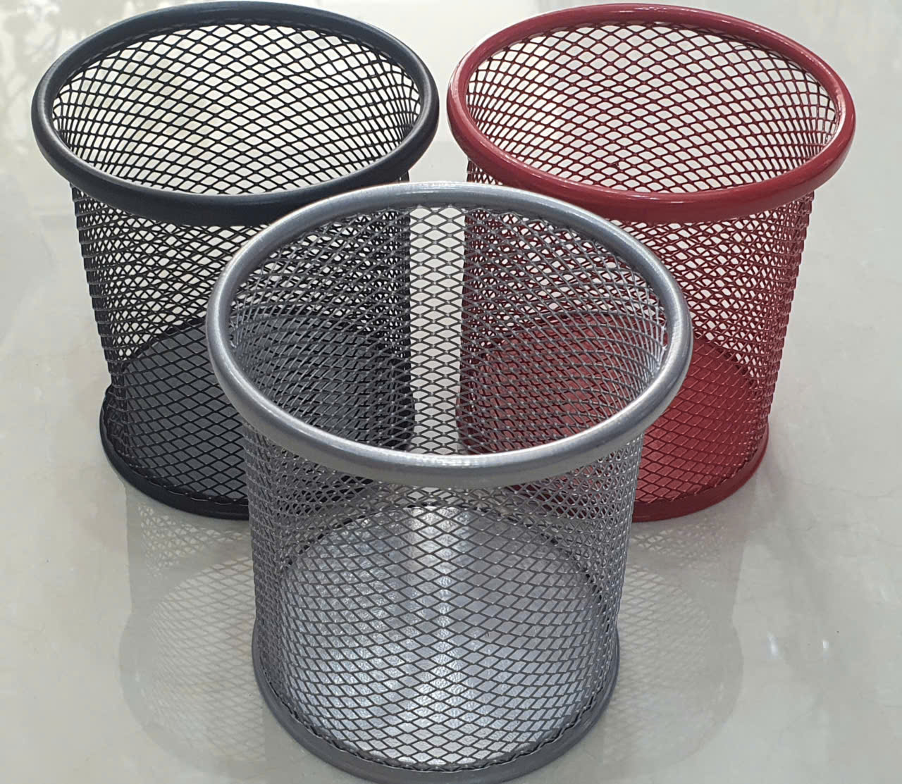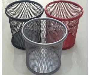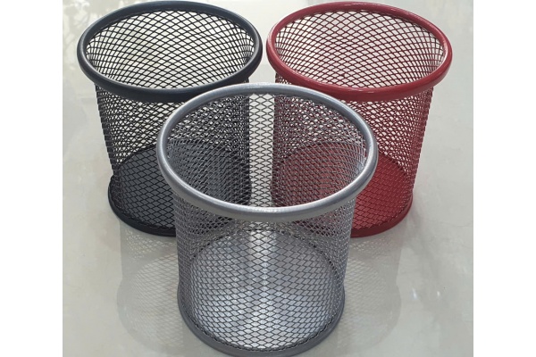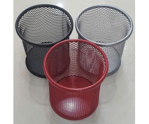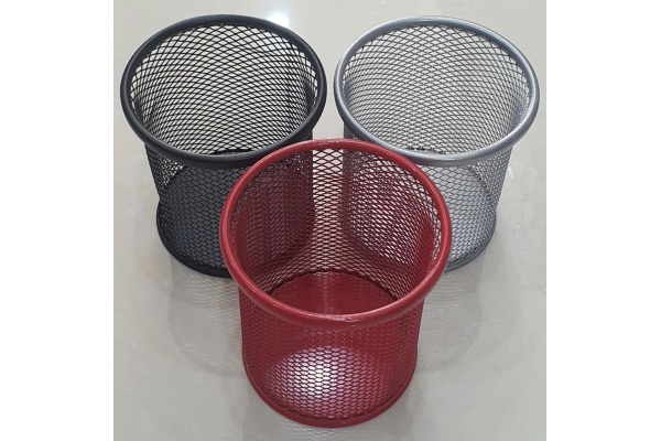 Ống cắm bút tròn lưới sắt là một vật dụng văn phòng phẩm phổ biến được làm từ kim loại phủ sơn tĩnh điện, thiết kế dạng lưới thoáng, hình trụ tròn để đựng bút và các đồ dùng khác.