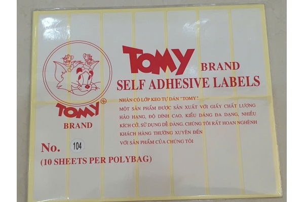 Decal Tomy 104 là một loại giấy decal văn phòng phẩm phổ biến tại Việt Nam, dùng để in tem nhãn, mã vạch.