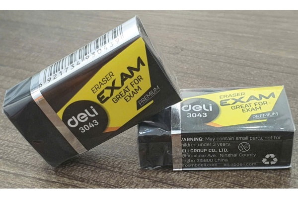 Gôm Deli 3043 (còn gọi là Tẩy đen Deli E3043) là một loại tẩy bút chì phổ biến, được làm từ cao su cao cấp mềm mại, nổi bật với khả năng tẩy sạch mà không làm rách hoặc nhăn giấy.