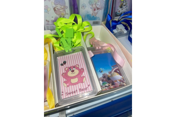 Thẻ đeo cổ nhựa trong suốt kèm dây đeo vải màu sắc, mặt thẻ in hình hoạt hình dễ thương như gấu “Sweet Bear” và các nhân vật ngộ nghĩnh. Sản phẩm giúp bảo vệ thẻ tên, thẻ học sinh, thẻ nhân viên, thẻ gửi xe khỏi bụi bẩn và nước, đồng thời mang lại phong cách trẻ trung, đáng yêu cho người sử dụng.