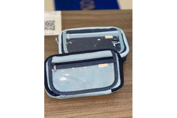 • Túi bút vải denim nhiều ngăn cầm tay có quai xách